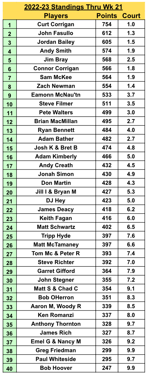 Congratulations to Curt, now a 7-Time Season Champ! He won the league with the highest point total ever this year. A gracious champion, Curt is humble and lets his paddle do the talking. However, he will have his work cut out next season as the young guns and improving veterans are eager to dethrone the top dog of Boulder Paddle!